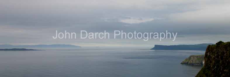 Fair Head , AntrimAlthough the day has become overcast and hazy. you can see the Scottish coast (Mull of Kintyre) 35km away. Somewhat closer, Rathlin Island is to the left, Fair Head is to the right. |