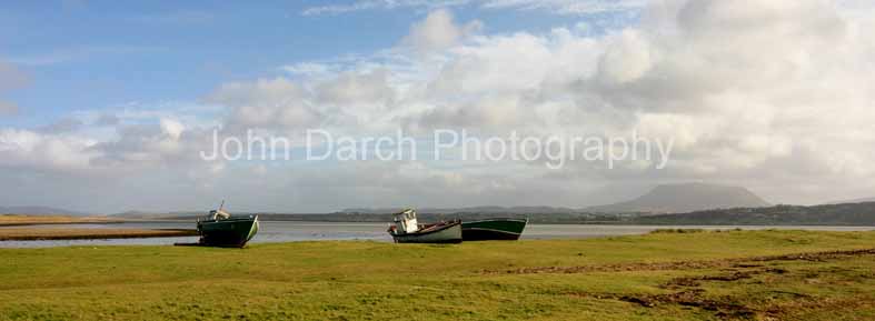 Ballyness Bay, DonegalBallyness Bay is a large estuary that is almost entirely landlocked and is only connected to the sea by a narrow stretch of water at its northernmost point. Despite being in very poor repair, the boats in the foreground have had a relatively recent coat of paint. The mountain in the right background is Muckish. |