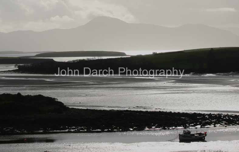 Croagh Patrick across Clew Bay, MayoThe low winter sun is reflected off the water and the mud flats exposed at low tide, while Croagh Patrick broods in the distance. |