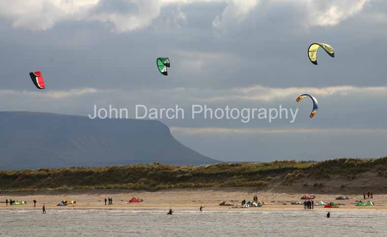Kite surfing, Mullaghmore , SligoA northerly wind brought a large contingent of kite surfers to Mullaghmore, overlooked by a brooding Ben Bulben, on a chilly day in March. |